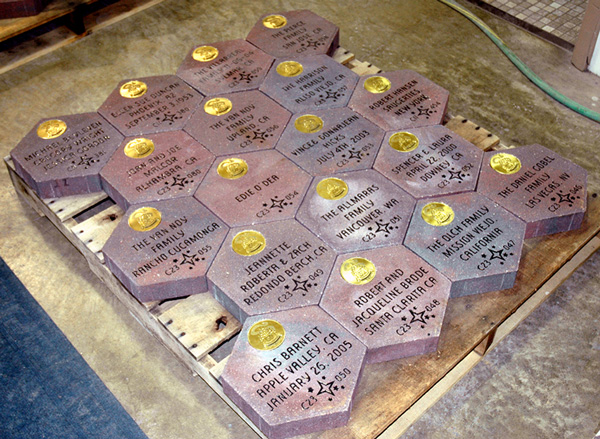 To create a medallion paver product, contact Gift Bricks® with the logo you would like to use. Our graphics team will create a design or pattern that fits your fundraising program perfectly. You are provided with proofs of your engraved design artwork for final approval. Whenever possible, we will provide you with an example of your finished product. Depending upon the chosen medallion, there may be setup charges applied for custom artwork.